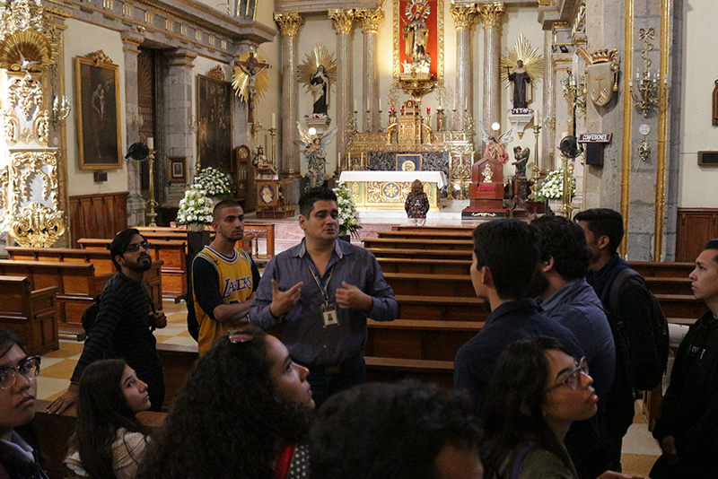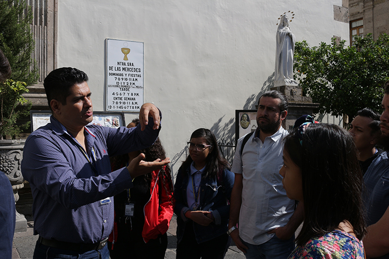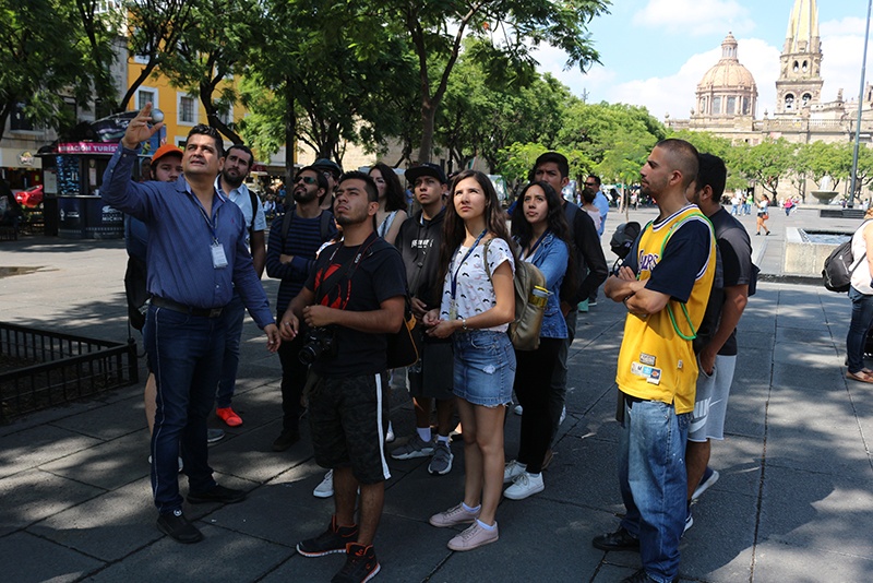 El recorrido, que estuvo integrado por alumnos de todos los semestres, inició en el Templo Expiatorio, para posteriormente pasar por San Francisco, la catedral de Guadalajara y, finalmente, llegar al Hospicio Cabañas, una de las construcciones más representativas de la época colonial.